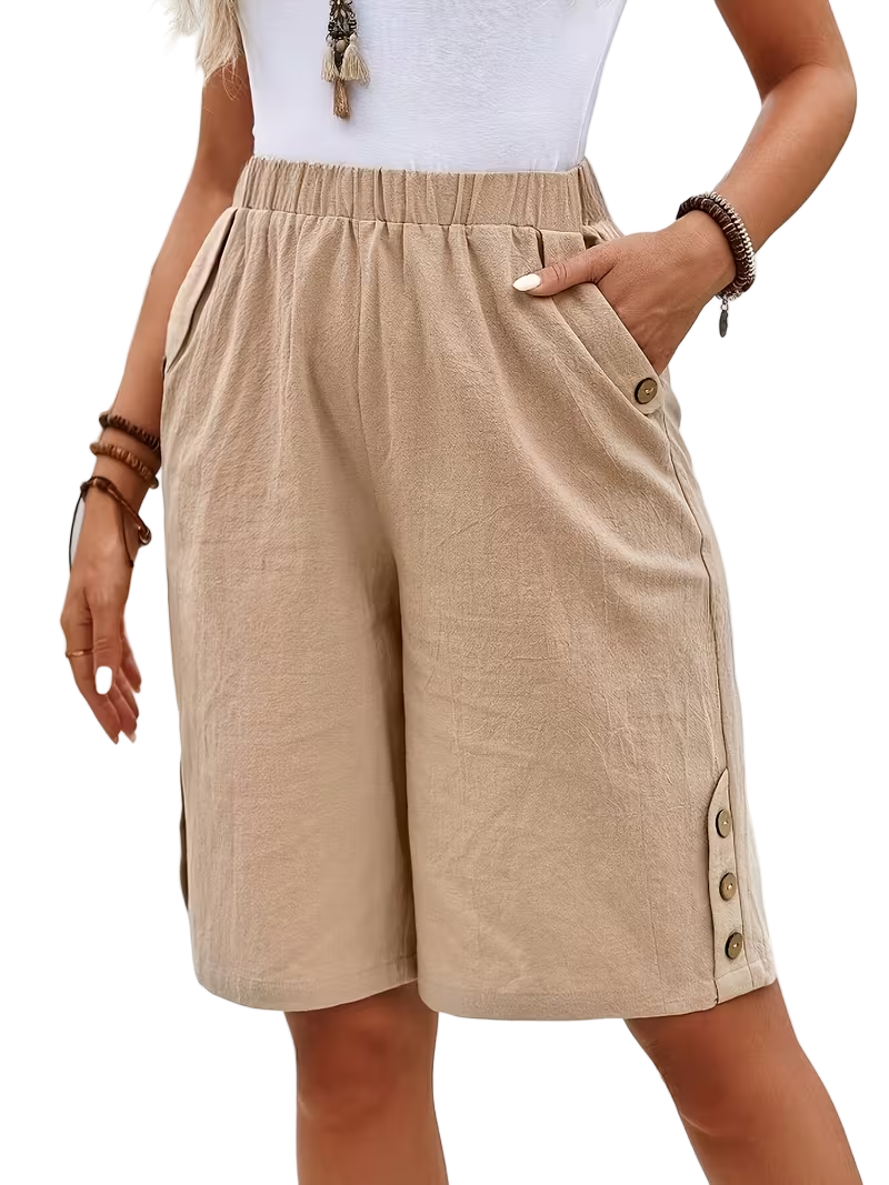 Szorty z Elastyczną Talią i Panelami z Guzikami