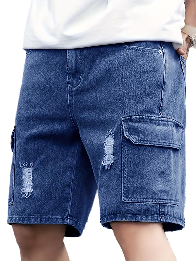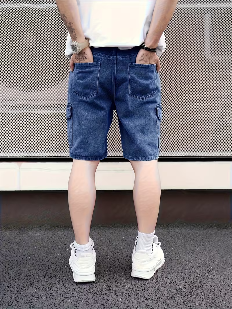 Te męskie szorty mają dwie skośne kieszenie w biodrach. Kieszenie z patkami w stylu cargo znajdują się po zewnętrznej stronie każdej uda. Z tyłu znajdują się również dwie kieszenie naszywane.